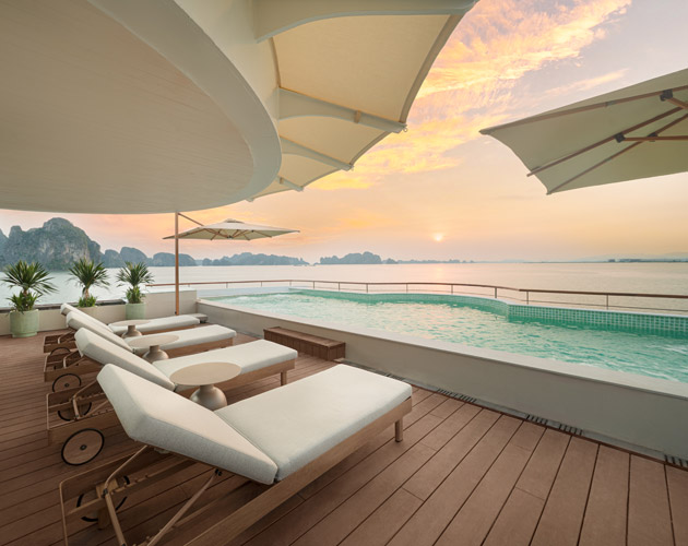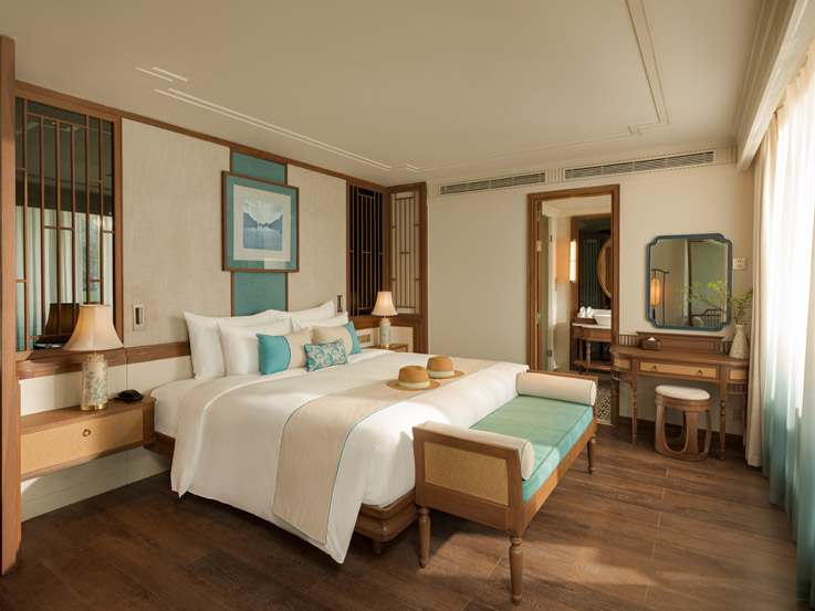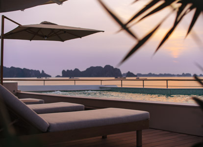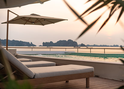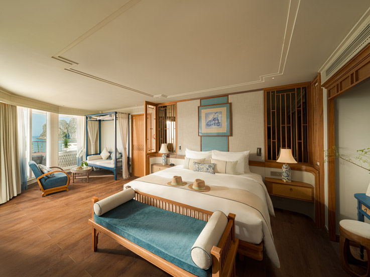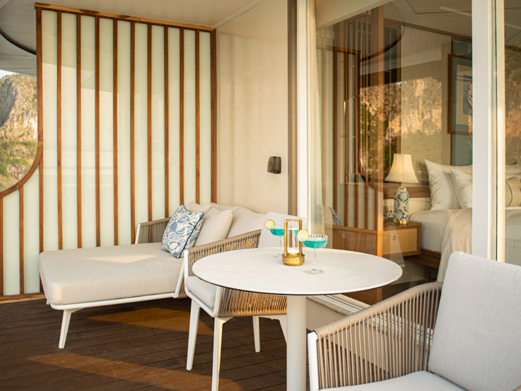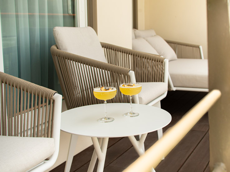 Inspired by Asian Scenery, Horizon Suites are ideal for those seeking comfort and space. Each suite offers stunning ocean views, a private terrace with sun loungers, and a large ensuite bathroom with modern amenities.