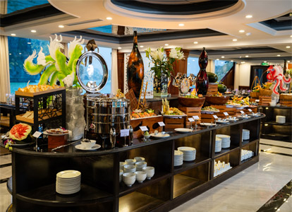 Guests are served a seafood buffet lunch prepared by the cruise’s culinary team. The menu includes a combination of local seafood, Vietnamese dishes, and some Asian and Western options. Meals are served in the main restaurant, where large windows allow guests to enjoy the bay view while dining. It is a comfortable dining experience that fits well into the overall day cruise program.