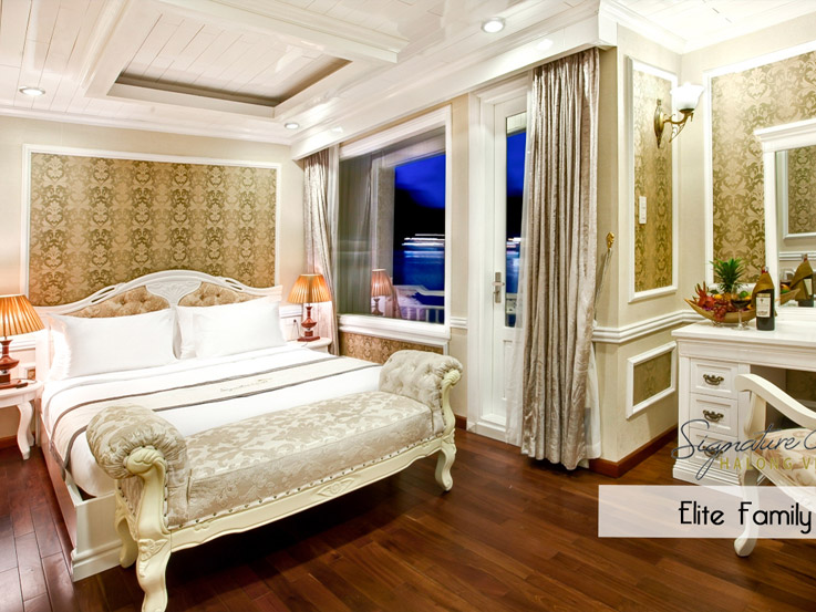 With elegant décor and handcrafted wooden furniture, the Junior Suites are cozy retreats for couples or families. Options include 4 twin and 2 double cabins, equipped with LCD TV, jacuzzi bathtub, and full amenities.