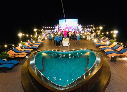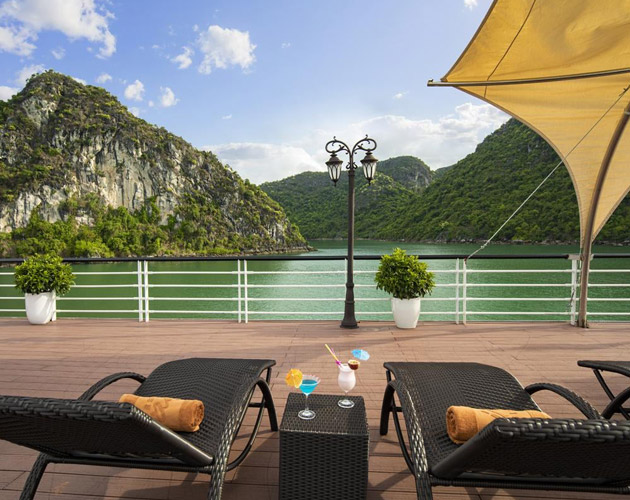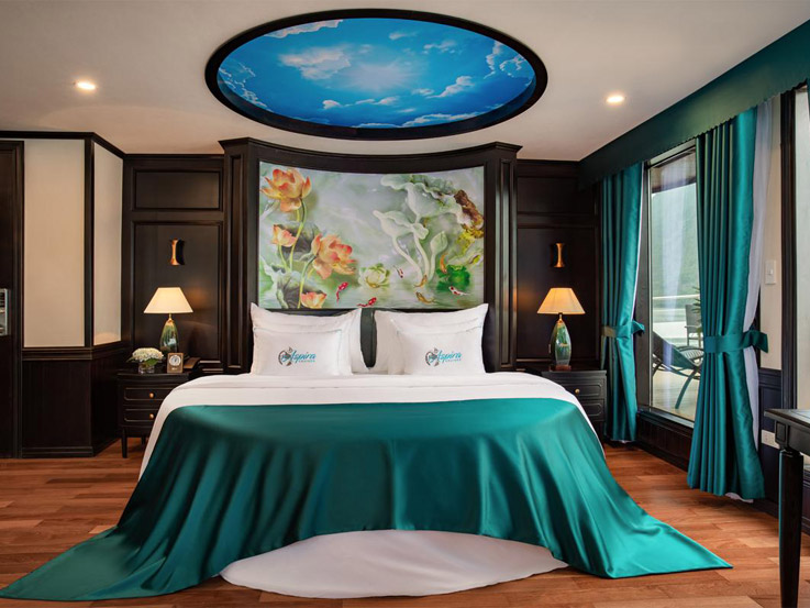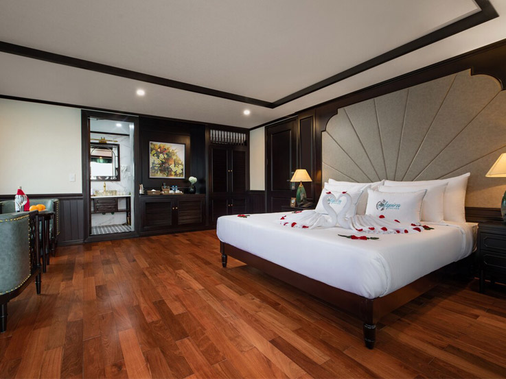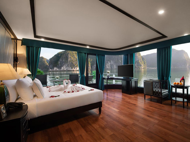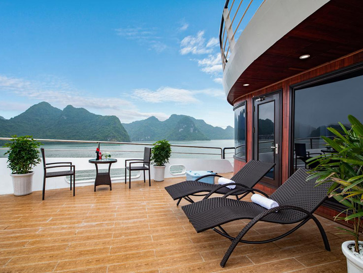 The most prestigious suite on board, offering a private sun terrace with breathtaking panoramic views. Its refined design, elegant furnishings, and exclusive ambiance ensure maximum privacy and sophistication. An exceptional choice for couples celebrating special occasions or seeking a truly luxurious escape.