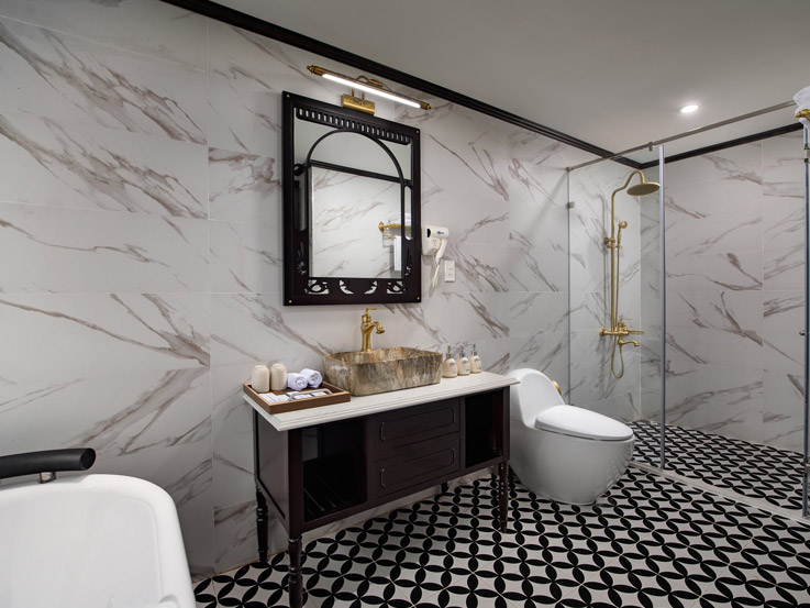 This suite offers a higher level of privacy with sweeping views from its private balcony. The sophisticated décor, warm wooden flooring, and spacious layout create a serene retreat after a day of exploration. Ideal for travelers who appreciate comfort combined with beautiful scenery.