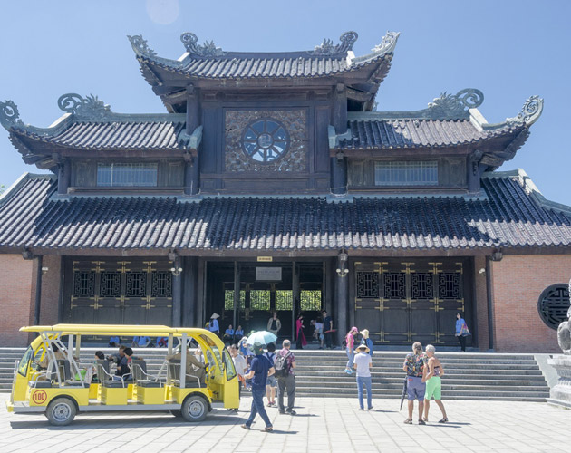 10:30: Arrive at Bai Dinh Pagoda — Vietnam's largest and most celebrated Buddhist temple complex. Explore the sweeping hilltop grounds at your own pace, with your guide on hand to explain the history and significance of each structure. Highlights include the stunning 500-statue Arhat walkway, the 100-tonne gilded bronze Buddha in the main hall, and the 36-tonne bronze bell in its towering bell tower — one of the largest in Southeast Asia. The panoramic mountain views from the upper terraces alone are worth the visit.