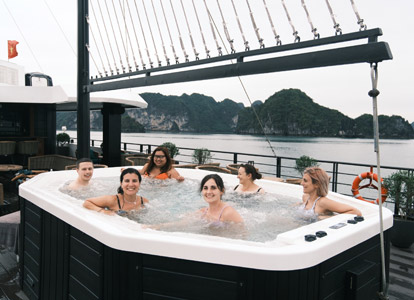 Join exciting water activities, including kayaking through the quiet corners of Lan Ha Bay, or take part in fun experiences on the floating platform with trampoline, slide, and other inflatables. Guests may also relax onboard and take photos of the stunning limestone scenery as the cruise anchors near Ao Ech (Frog Pond).