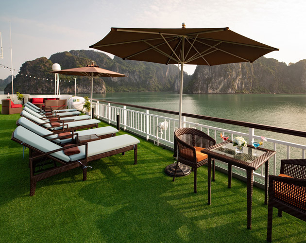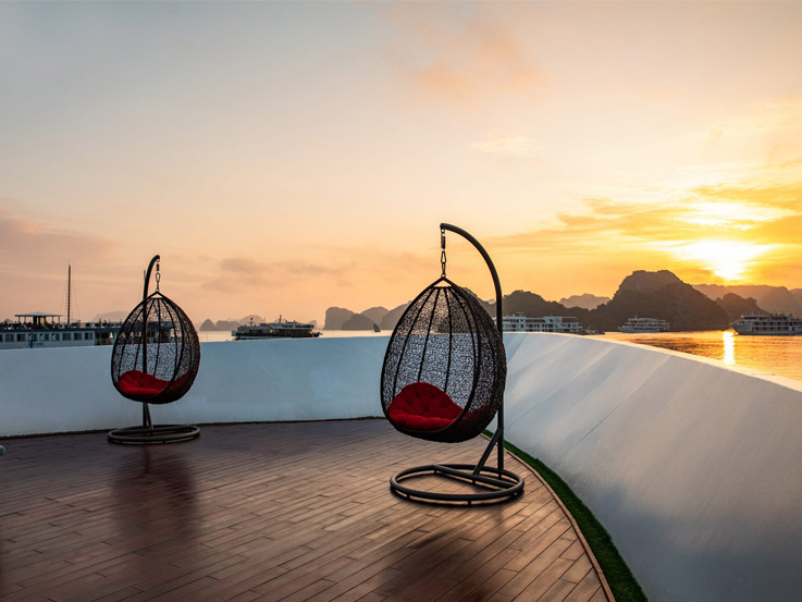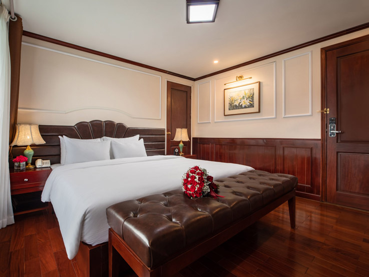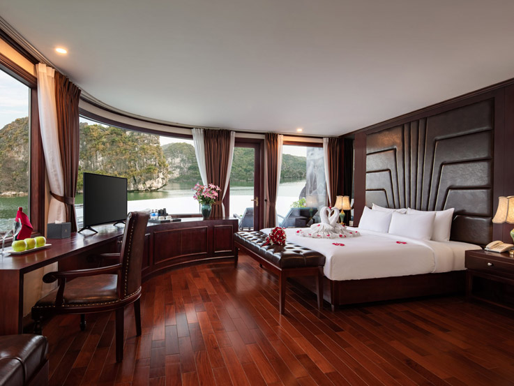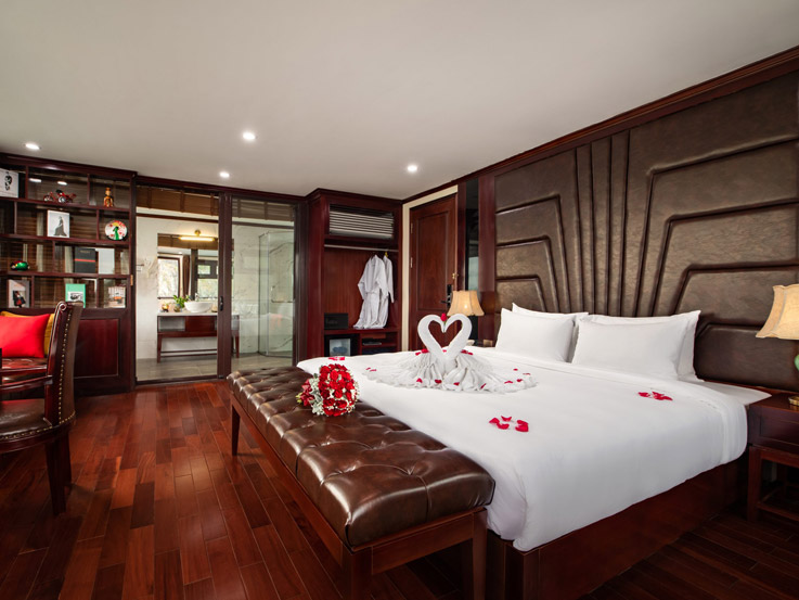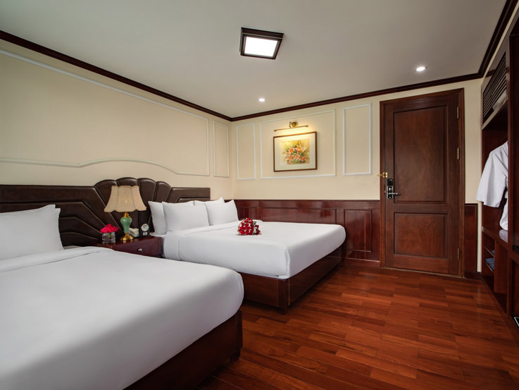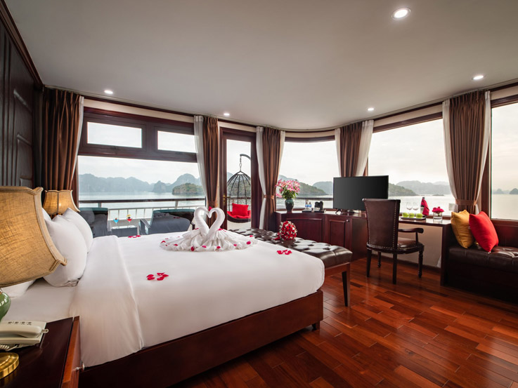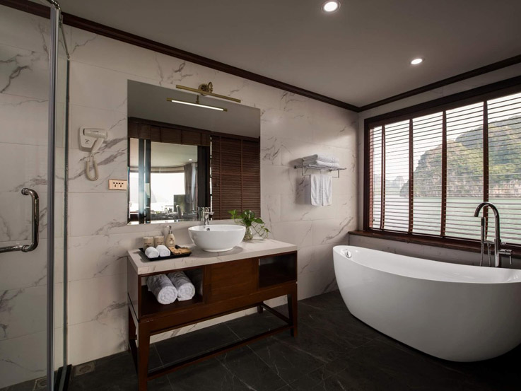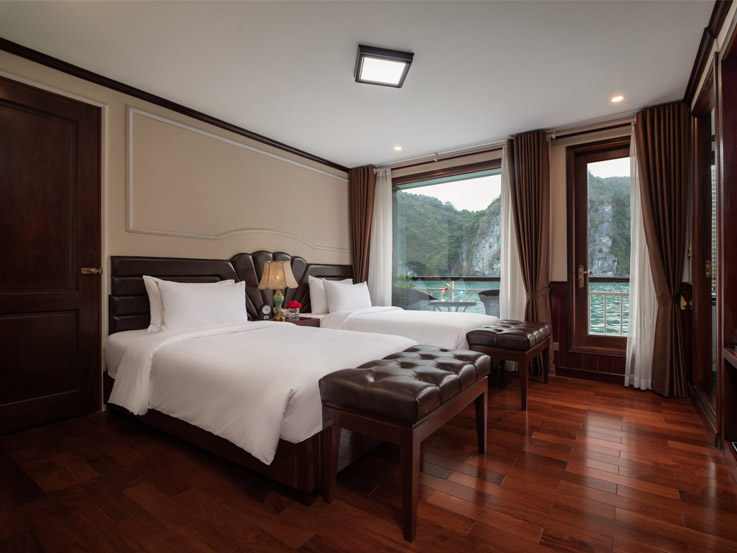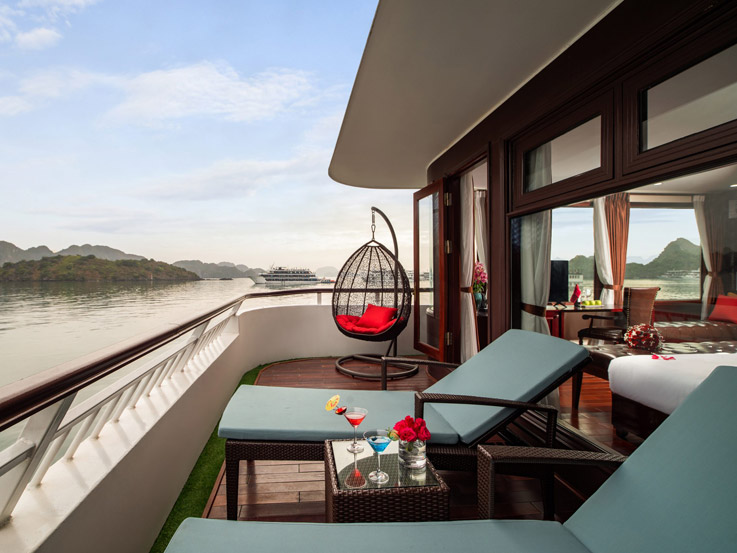 Spacious and ideal for families, these connecting cabins feature two private bathrooms and balconies, offering stunning views of Lan Ha Bay. Relax on the balcony with tea or enjoy the sea view right from your bed.