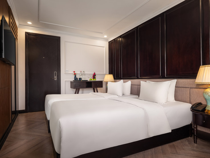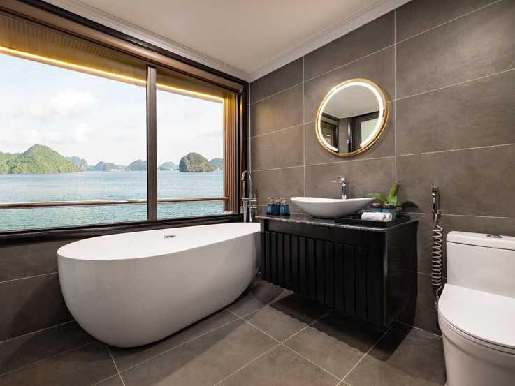Situated on the 2nd floor, the Senior Suite provides guests with an elevated perspective of Lan Ha Bay. The suite features a private balcony and an ocean-view bathtub, offering a tranquil environment for relaxation.