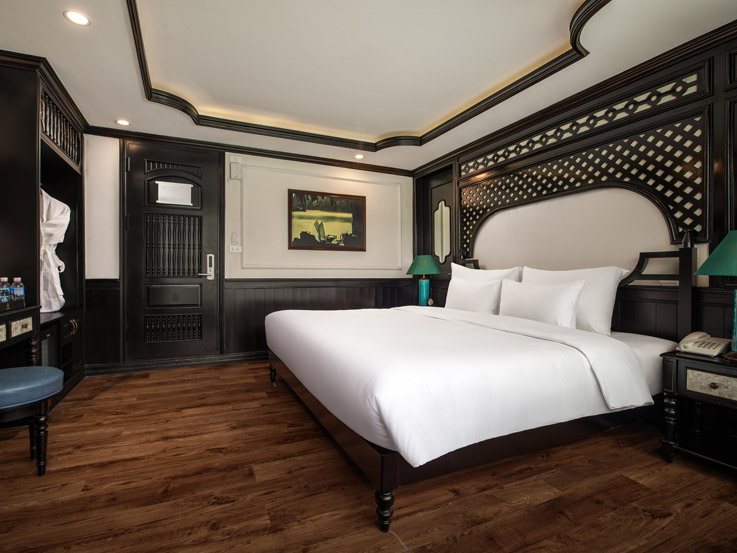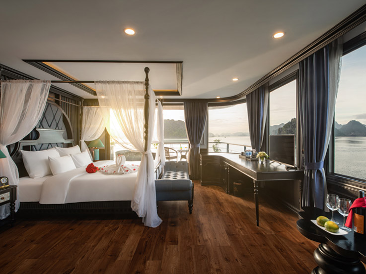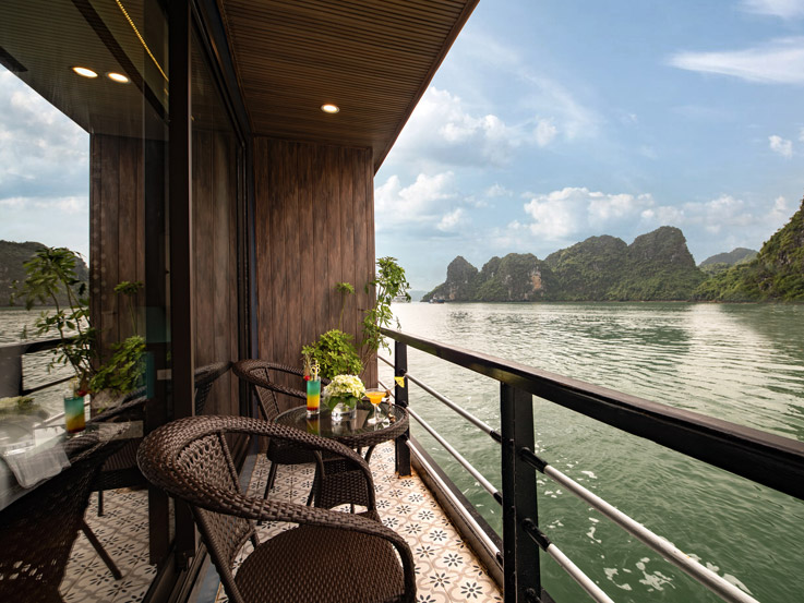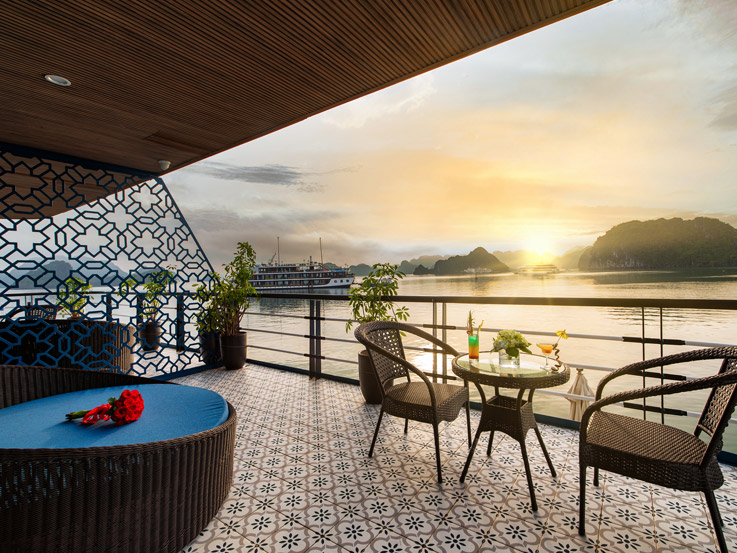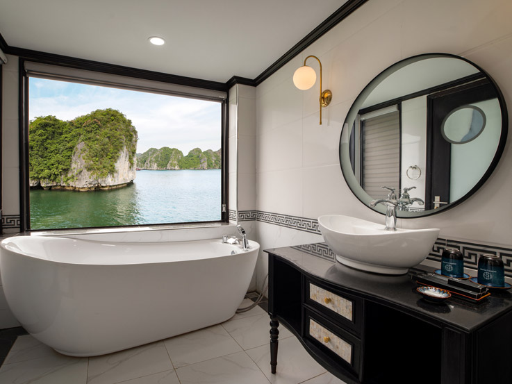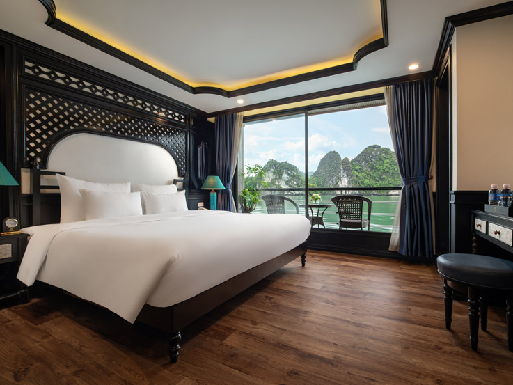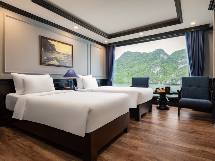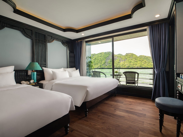 Designed for families or small groups, these spacious cabins offer stunning views of Lan Ha Bay through large windows and a private balcony. The elegant layout and thoughtful amenities ensure a comfortable and relaxing stay.