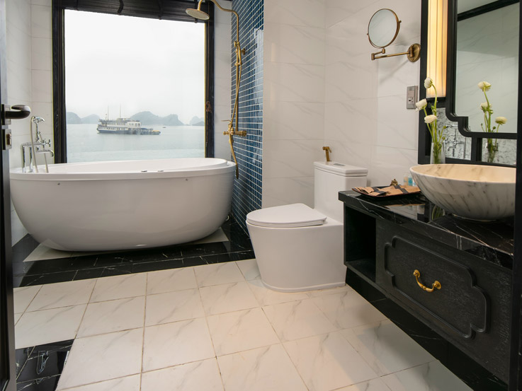 You’ll board a tender to transfer to Le Journey Luxury Cruise. A welcome drink awaits as the cruise manager gives a short safety briefing and overview of the journey. After that, you’ll be escorted to your cabin for check-in.