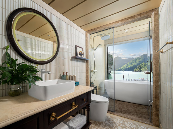 Located on the first floor, the Oasis Family Suite offers a cozy and comfortable environment for families with children or small groups. Oasis Family Suite is spacious for a family, with soft bedding, tasteful design, and a bathtub with an ocean view. It’s the perfect base for bonding, relaxing, and experiencing the calm rhythm of Lan Ha Bay together.